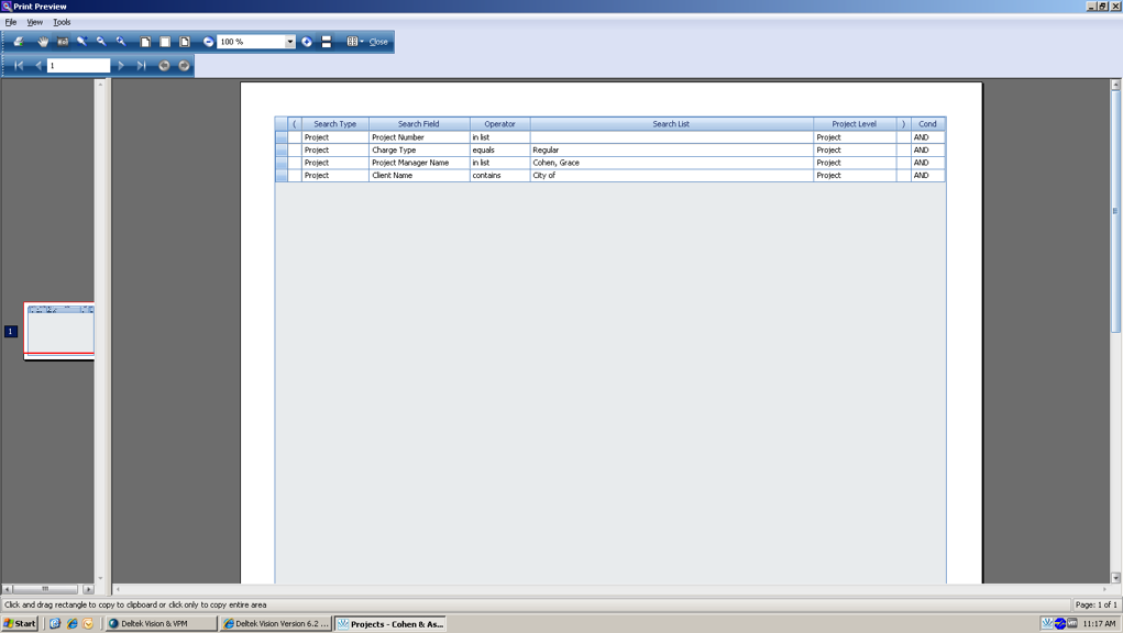 When you click Print, this is the screen that will appear. You can print but you can’t save it. If it is something you want to save, click the Export to Excel and save from there.