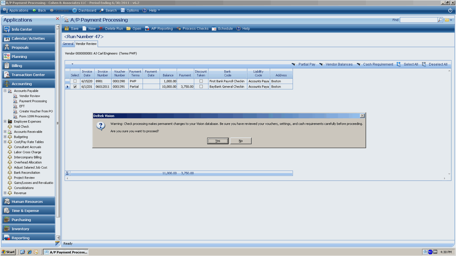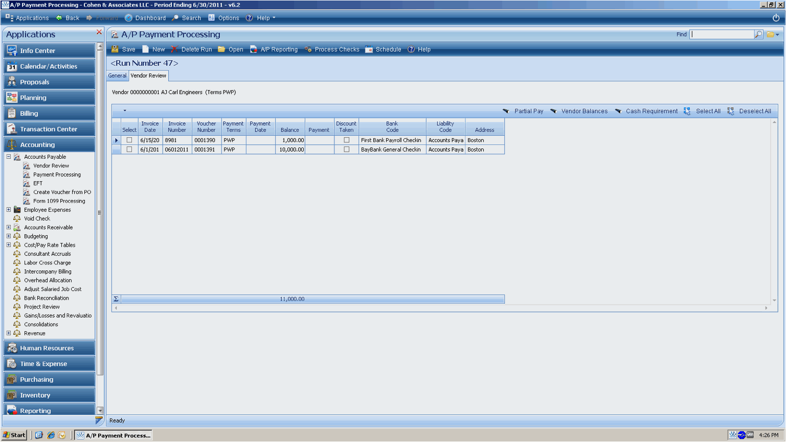 Step 1: Under Accounting/Accounts Payable/Payment Processing, create a New file. Select the vendor (automatically or manually).