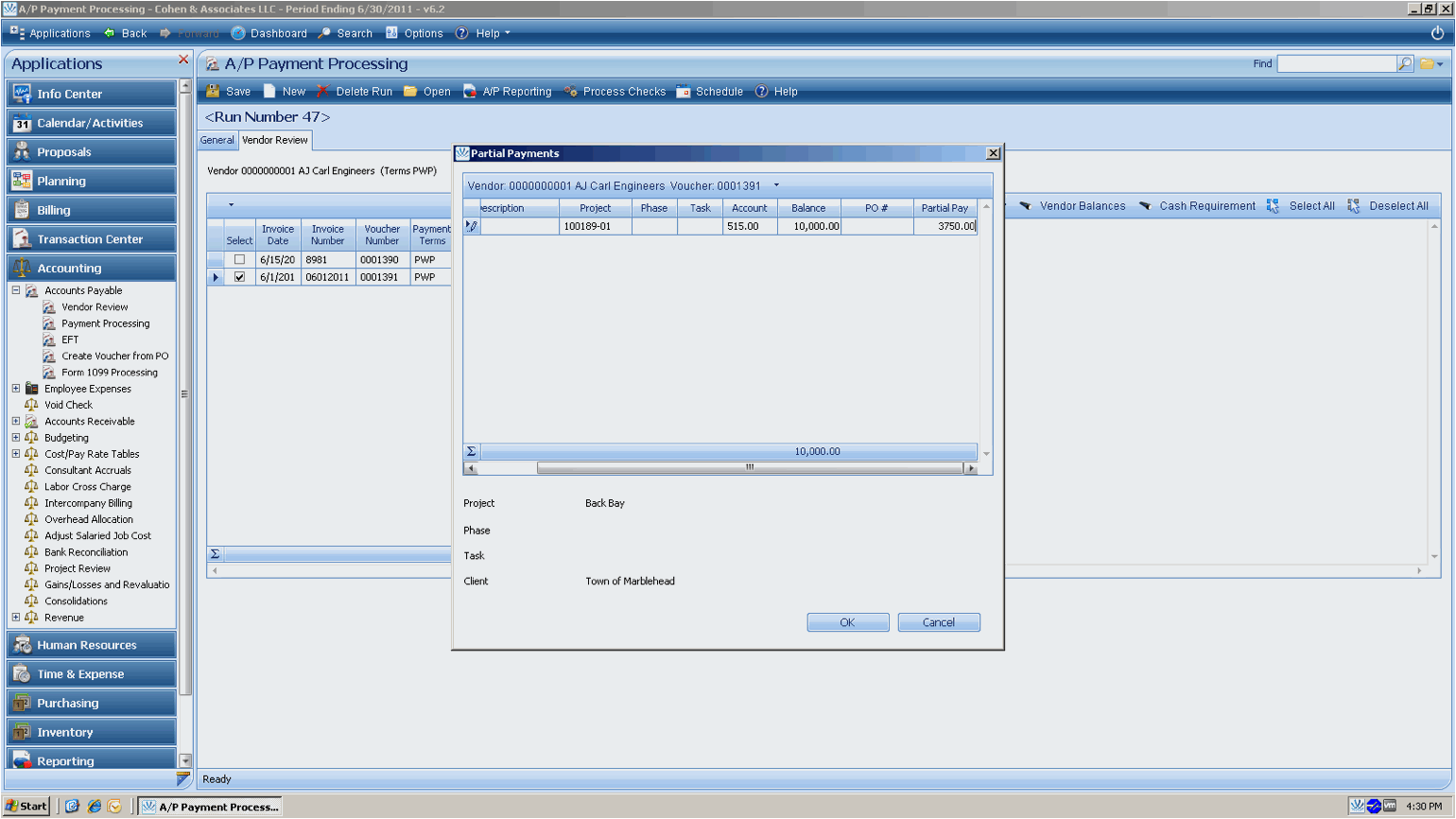 Step 2: Select the voucher to pay and click “Partial Pay”.