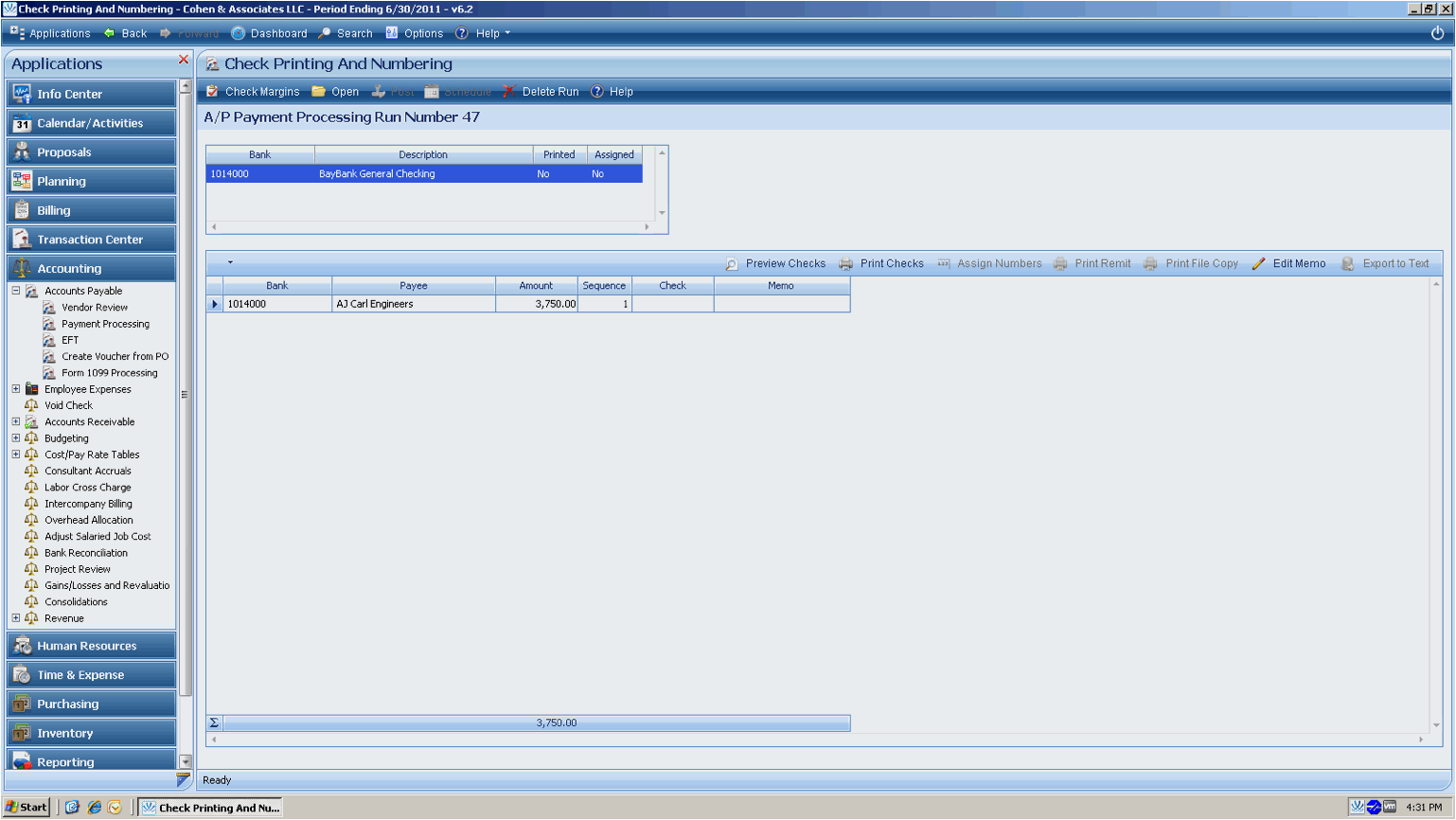 Step 4: Preview, print, assign number and post. The remaining balance will be available for future payments.