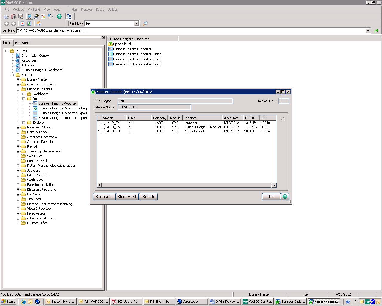 Did you know that you could send a message to everyone currently logged into MAS? Just open the Master Console by clicking on the computer monitor icon at the top menu or by going to Library Master/Main/Master Console. You will get a screen that pops up and shows you everyone that is currently logged into MAS. In the lower right hand corner you will see a button called Broadcast. Simply type in your message and click the Send Message button. Your message will appear on the screen for all that are logged in…